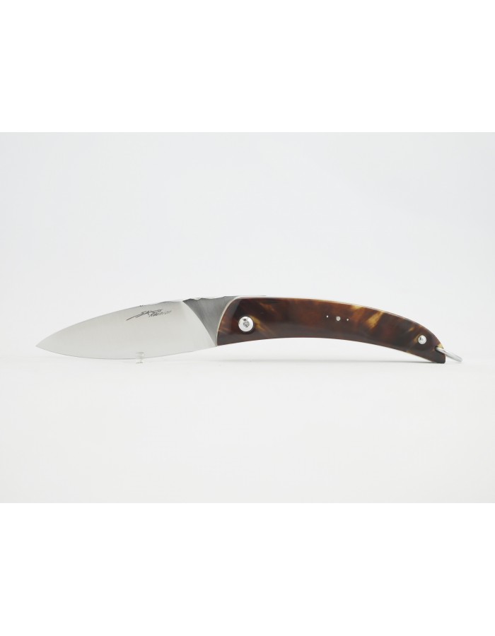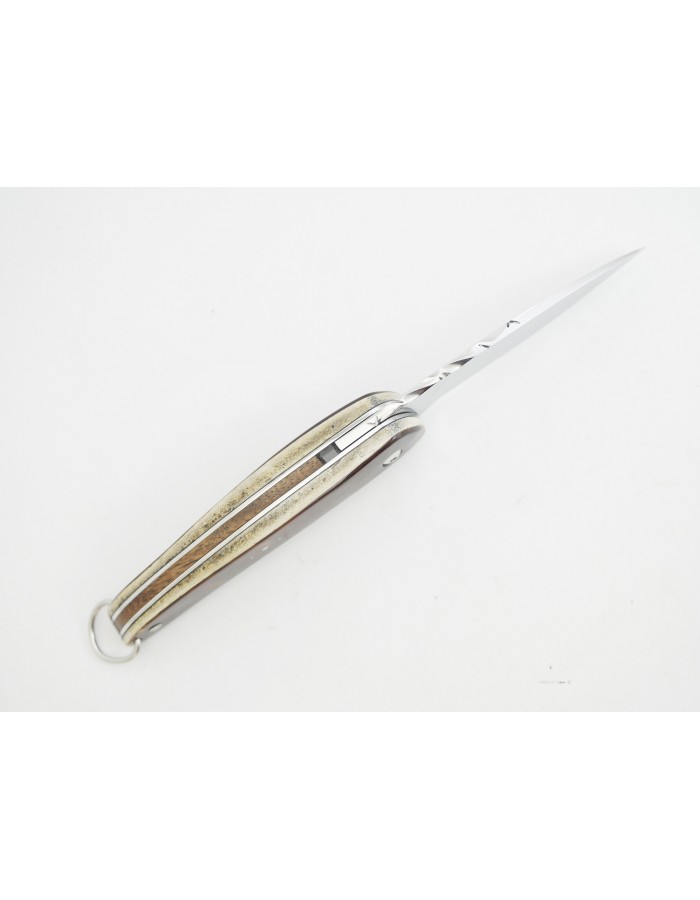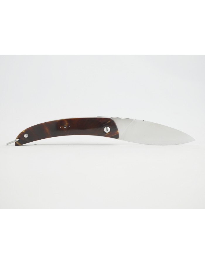 Couteau un pliant à système "deux clous" ,muni d'un axe de butée en inox et d'un axe de lame en entretoise inox dont le serrage est réglable par clé Alen ( six pans creux) .