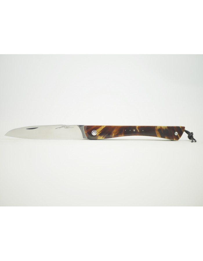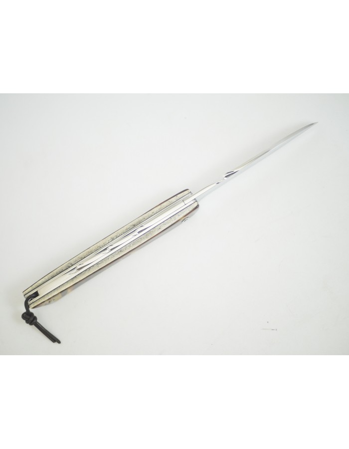 Monté avec des rivets bombés à l'ancienne et une butée de lame ( vis inox centrale ) .