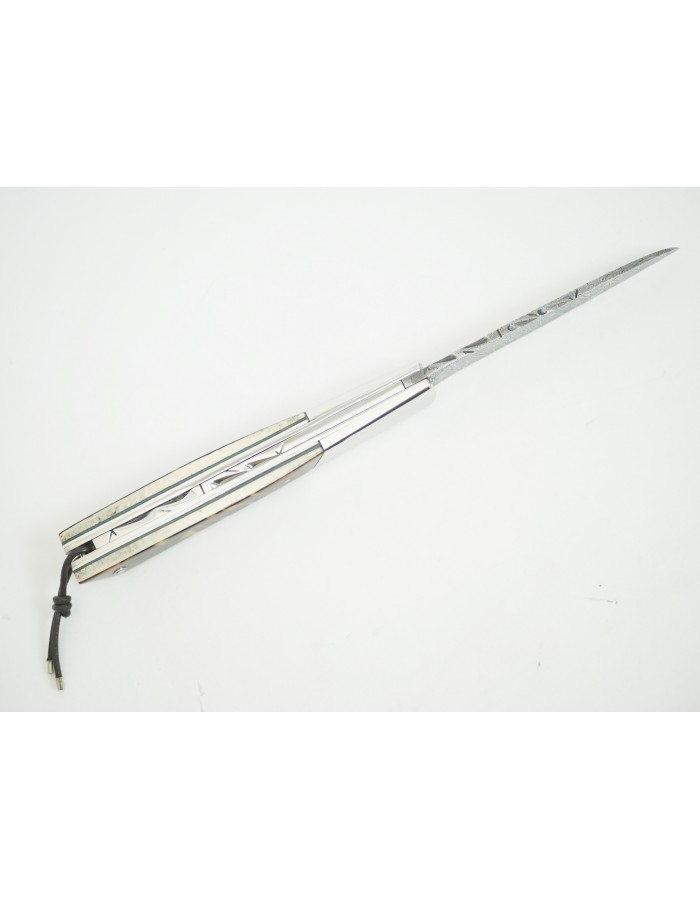 Manche environ 12 cm à cran forcé ,est fabriqué à partir de platines en maillechort de 1,5 mm lui conférant son poids , sa rigidité et sa souplesse de mécanisme. - Monté avec des rivets bombés à l'ancienne et une butée de lame .( vis inox centrale ) -