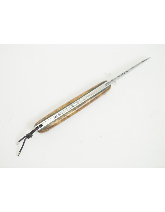 Couteau monté en bois de Tamarin Reunion , Lame Damas
