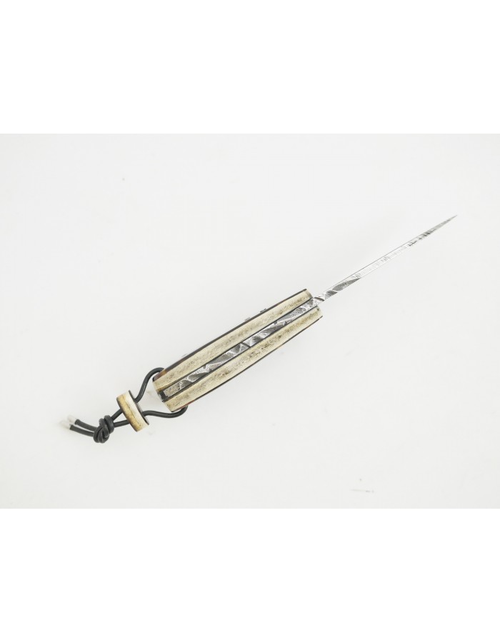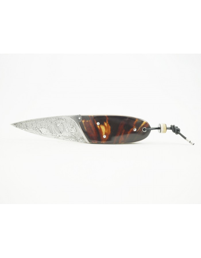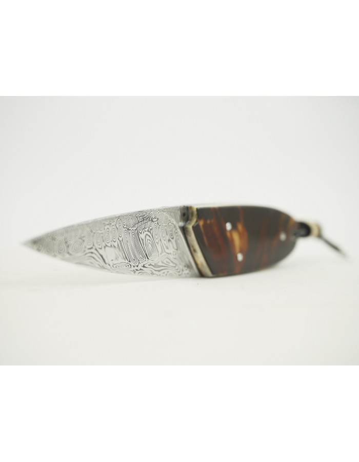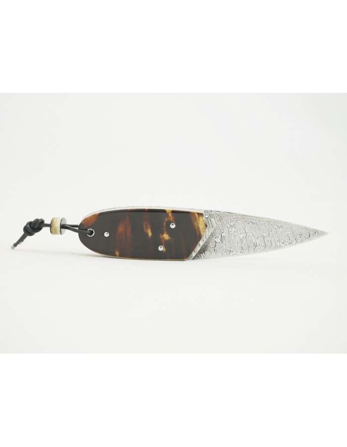 Couteau droit de petite taille , lame Damas , monté en Carapace de Tortue pré convention
